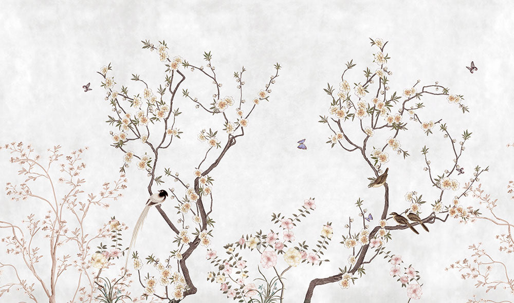 シノワズリな植物と鳥のデザイン