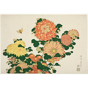 はがせるミューラル壁紙 のりなし 葛飾北斎 菊に虻(鮮やか) NSO-M00001