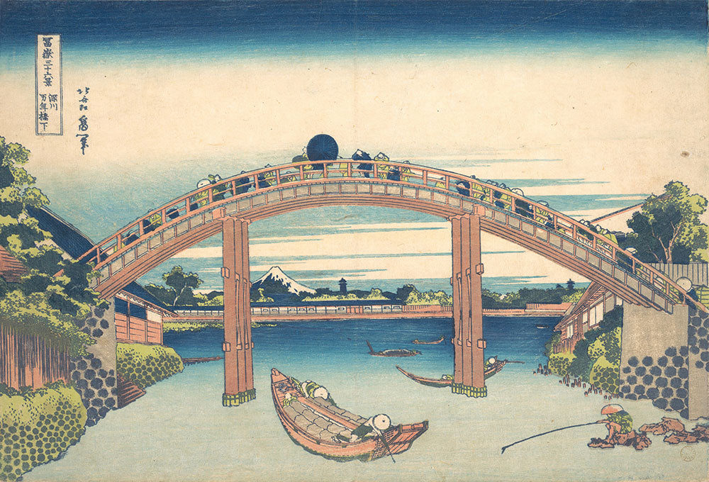 万年橋は東西に流れる小名木川と、南北に流れる隅田川の合流地点に架けられた橋のこと。大きな弧を描いた橋が特徴的。