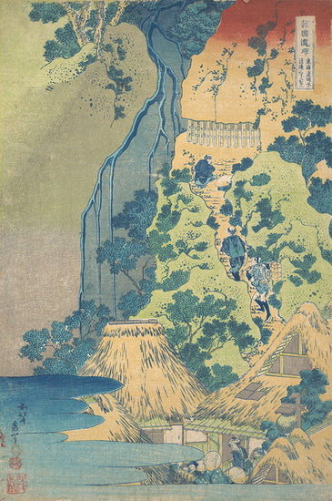 枝分かれしながら岩肌を細く伝う滝の流れや、清滝観音に手を合わせてお参りをしている人など、葛飾北斎には珍しい動きの少ない作品。
