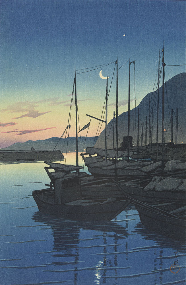 衰退した日本の浮世絵版画を復興すべく、吉田博らとともに新しい浮世絵版画である新版画を確立した川瀬巴水の木版画。