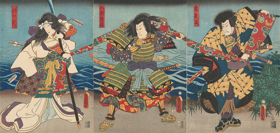 はがせるミューラル壁紙 のりなし 歌川国貞 赤い旗を引く3人の歌舞伎役者
