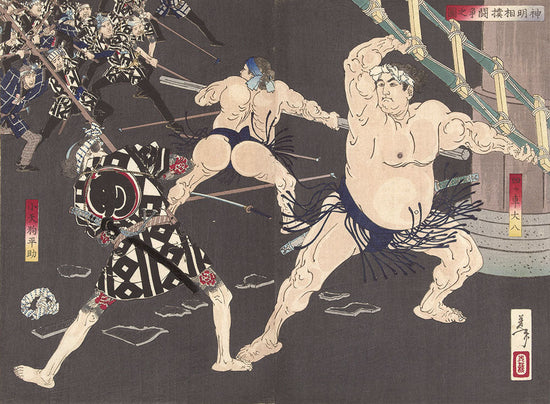はがせるミューラル壁紙 のりなし 月岡芳年 新撰東錦絵 神明相撲闘争之図
