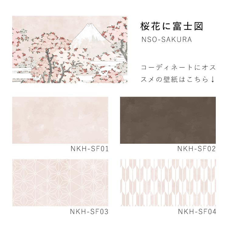 はがせるミューラル壁紙 のりなし 和セレクション 桜花に富士図 シンプルデザイン NSO-SAKURA