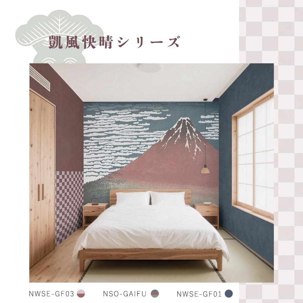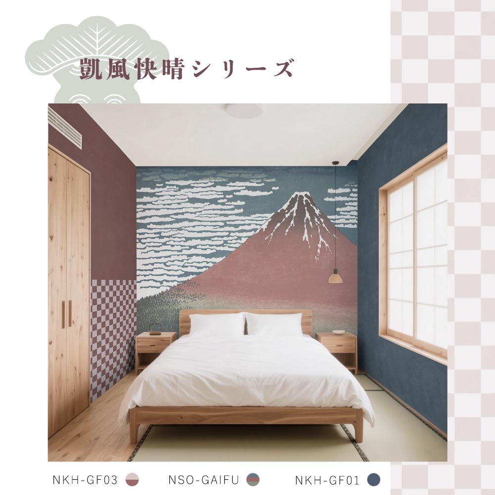 民泊の印象的な空間づくりにも、個人の和モダンな部屋にも、柄選びの手間なく統一感のある空間に。