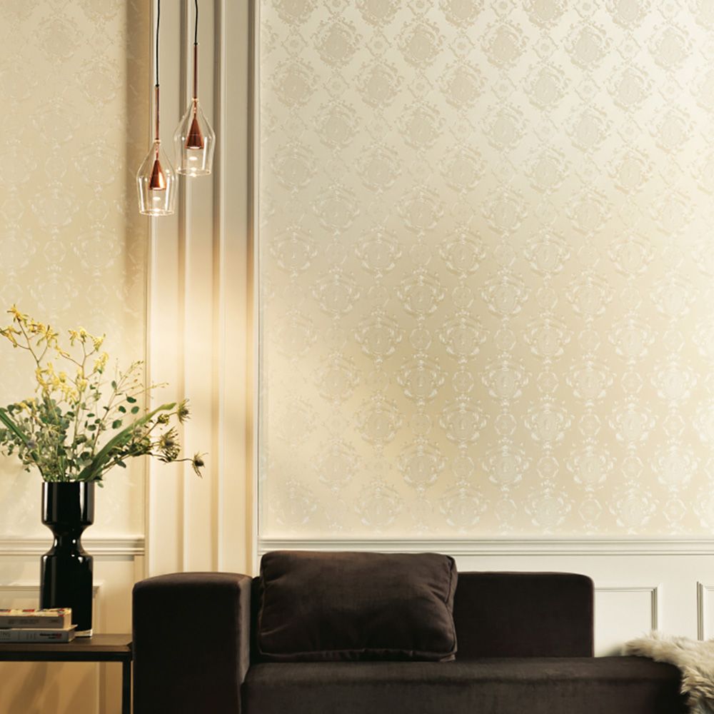 縦枠のパターンを細かな彫刻で刻み入れた、高級感のある壁紙