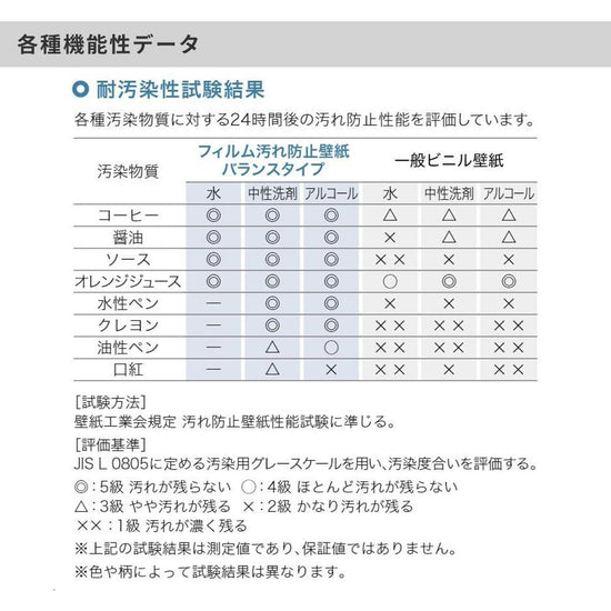 | 注意事項 | ●モルタル・ベニヤ下地に施工する場合は、フクレやアクを防ぐため、シーラー処理をしてください。オープンタイムは長めに取ってください。 ●オープンタイム不足はフクレ等の原因になります。糊付け後は大きくたたみ、折りジワや糊ダマリに注意して、上積みは避けてください。エアーや水分が抜けにくく、特に低温時にはフクレが生じやすいためご注意ください。 ●出隅の納めの際は折り曲げた壁紙の表面からきれいな布でしっかりとおさえてください。施工後は表面に付着した糊や汚れをきれいに拭き取ってください。拭き残しがあると変色の原因になります。 |