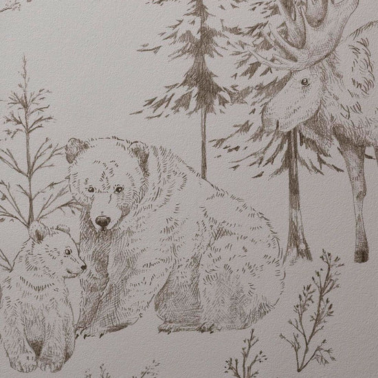 "森の中での生活”という意味です。 ミリクローレル スウェーデンの道を進んでいくと、さまざまな野生の動物に出会えることがあります。 北欧ならではの凛とした森と、動物たちの優しい目線を感じられるように鉛筆で描きました。