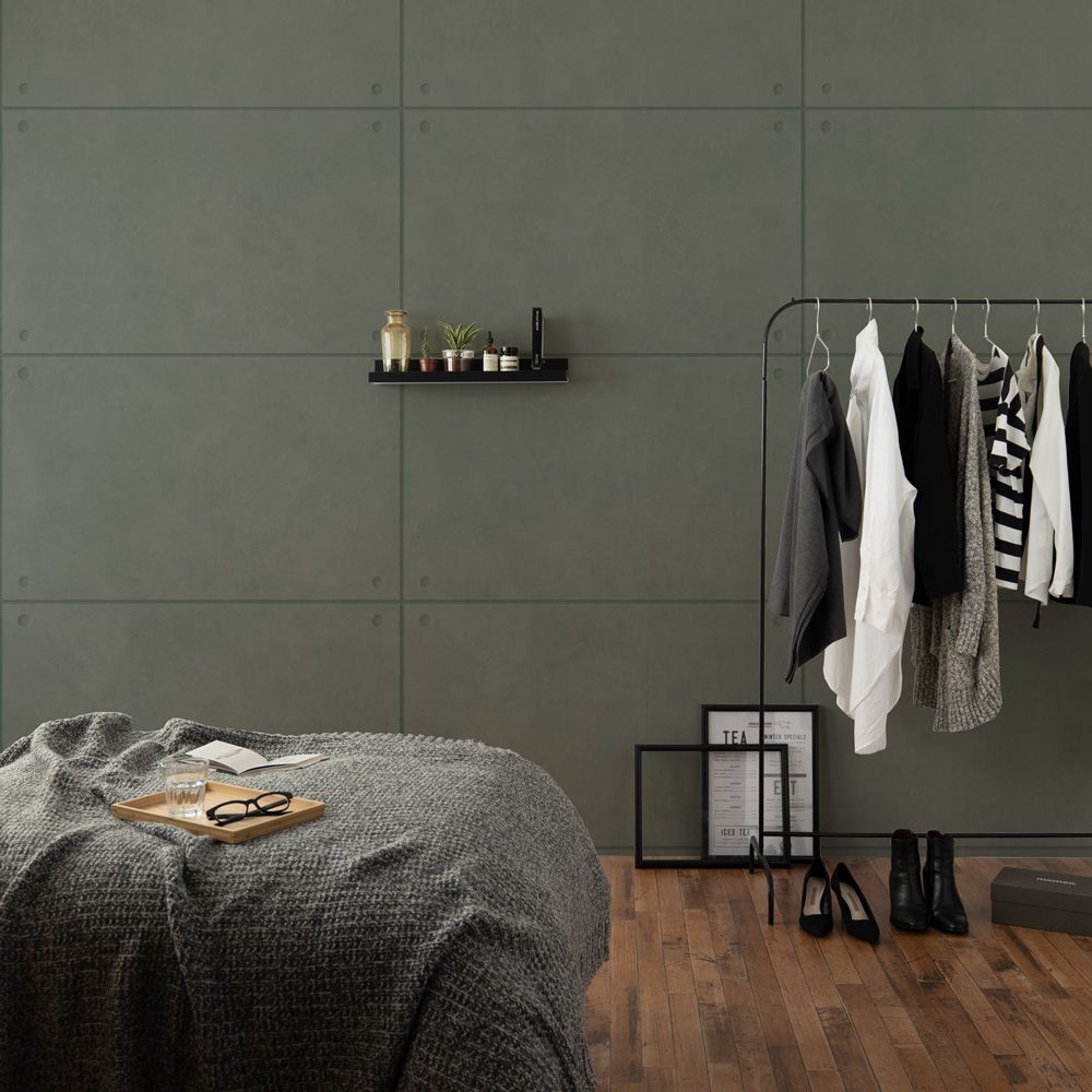 フラットなコンクリートにもうひと声アクセントが欲しい、そんなときにひと味足してくれるのが打ちっぱなしのデザインです。外壁をイメージしないようセパ穴を四隅に寄せ、生活空間に合うようRe:デザインしました。デザイナーズを彷彿とさせるミニマムでモダンな雰囲気は木材や金属、ガラスなど様々なマテリアルとの相性も良くインテリアに深みが出ます。