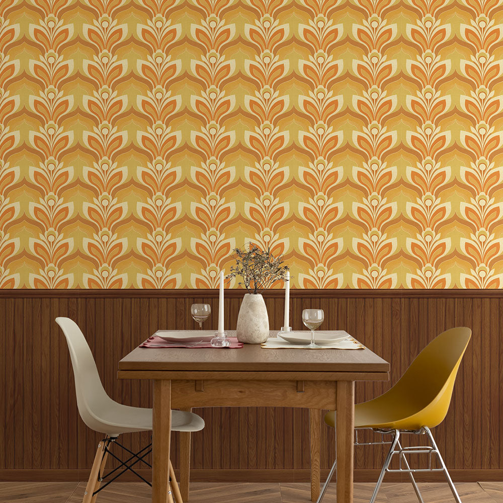 人気のReビンテージウォールペーパーシリーズとウッドパネルのデザインを組み合わせました。