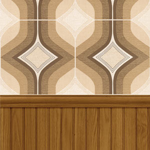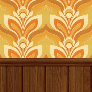 人気のReビンテージウォールペーパーシリーズとウッドパネルのデザインを組み合わせました。