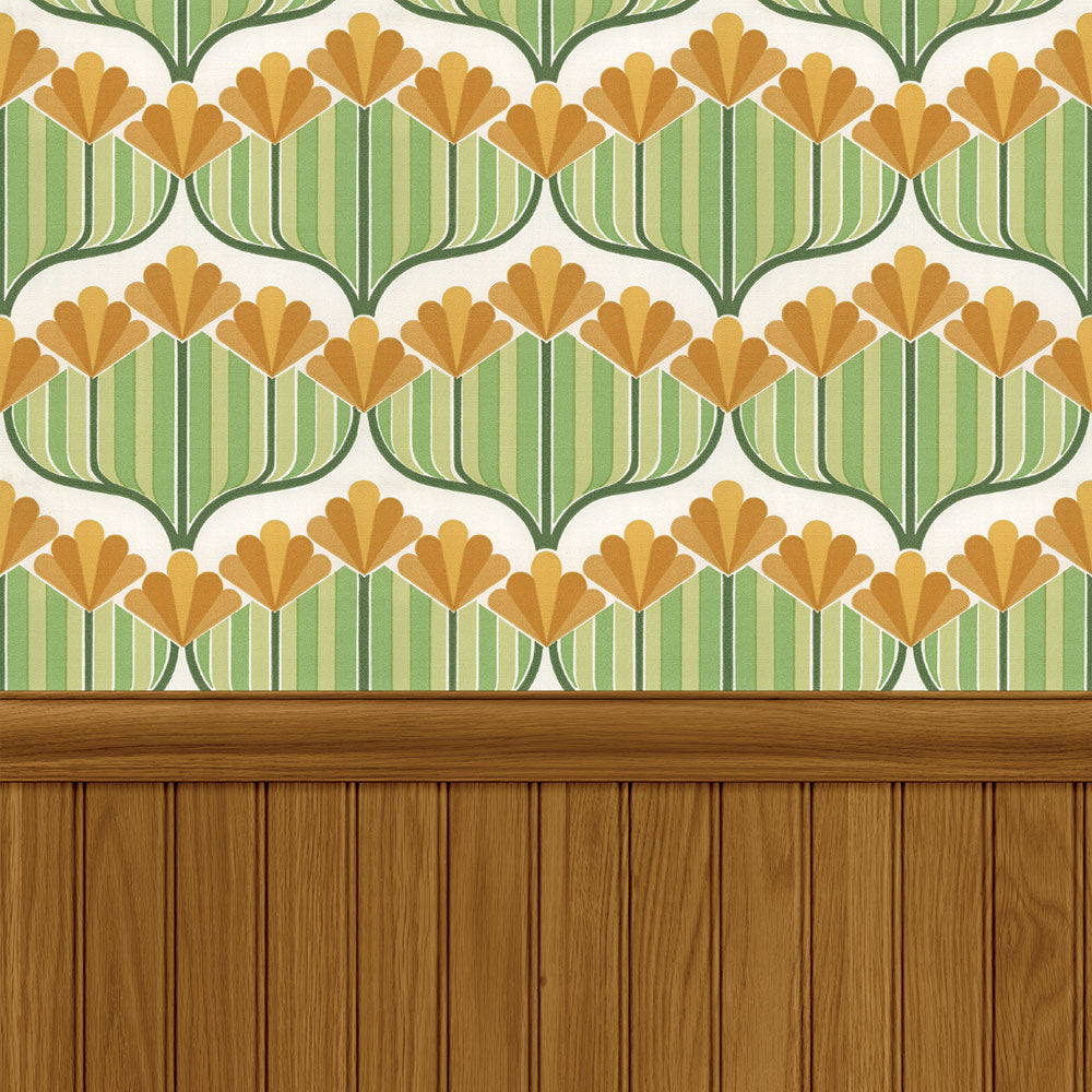 人気のReビンテージウォールペーパーシリーズとウッドパネルのデザインを組み合わせました。