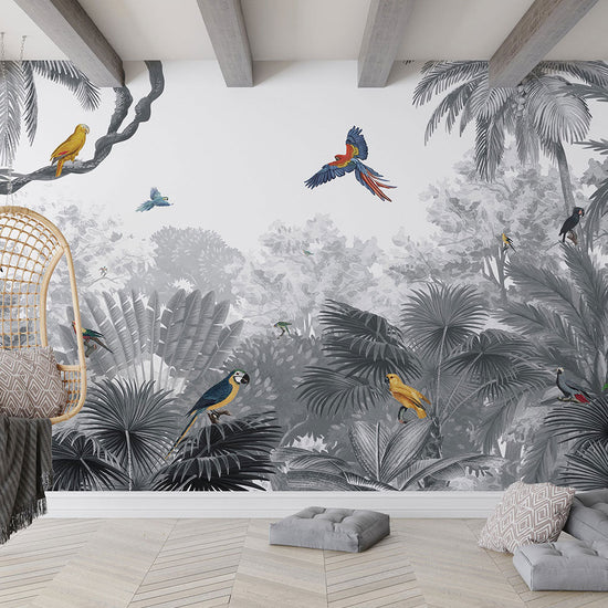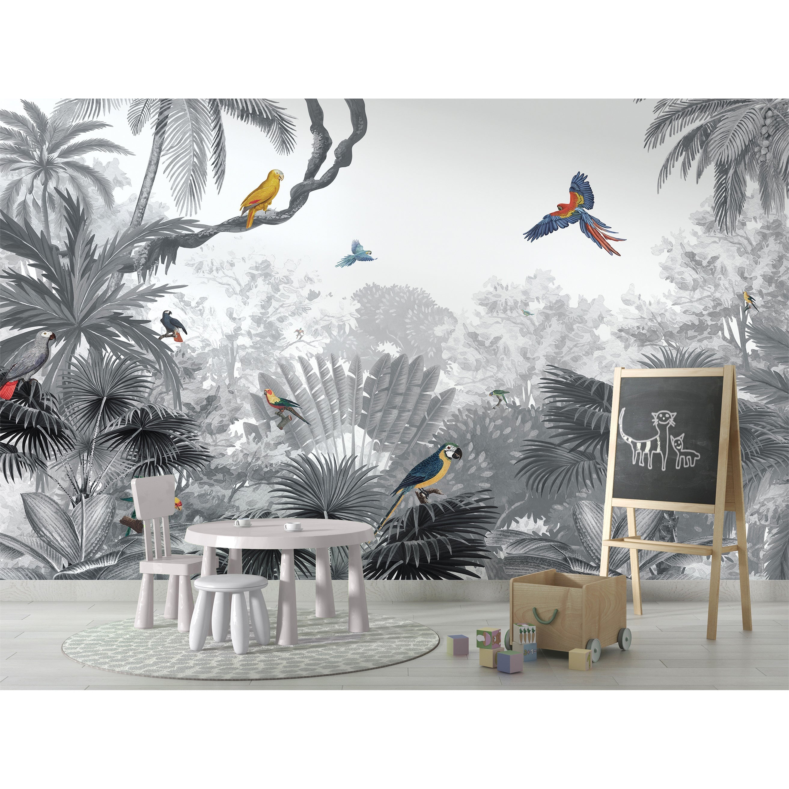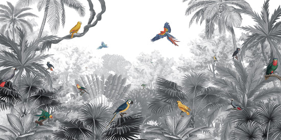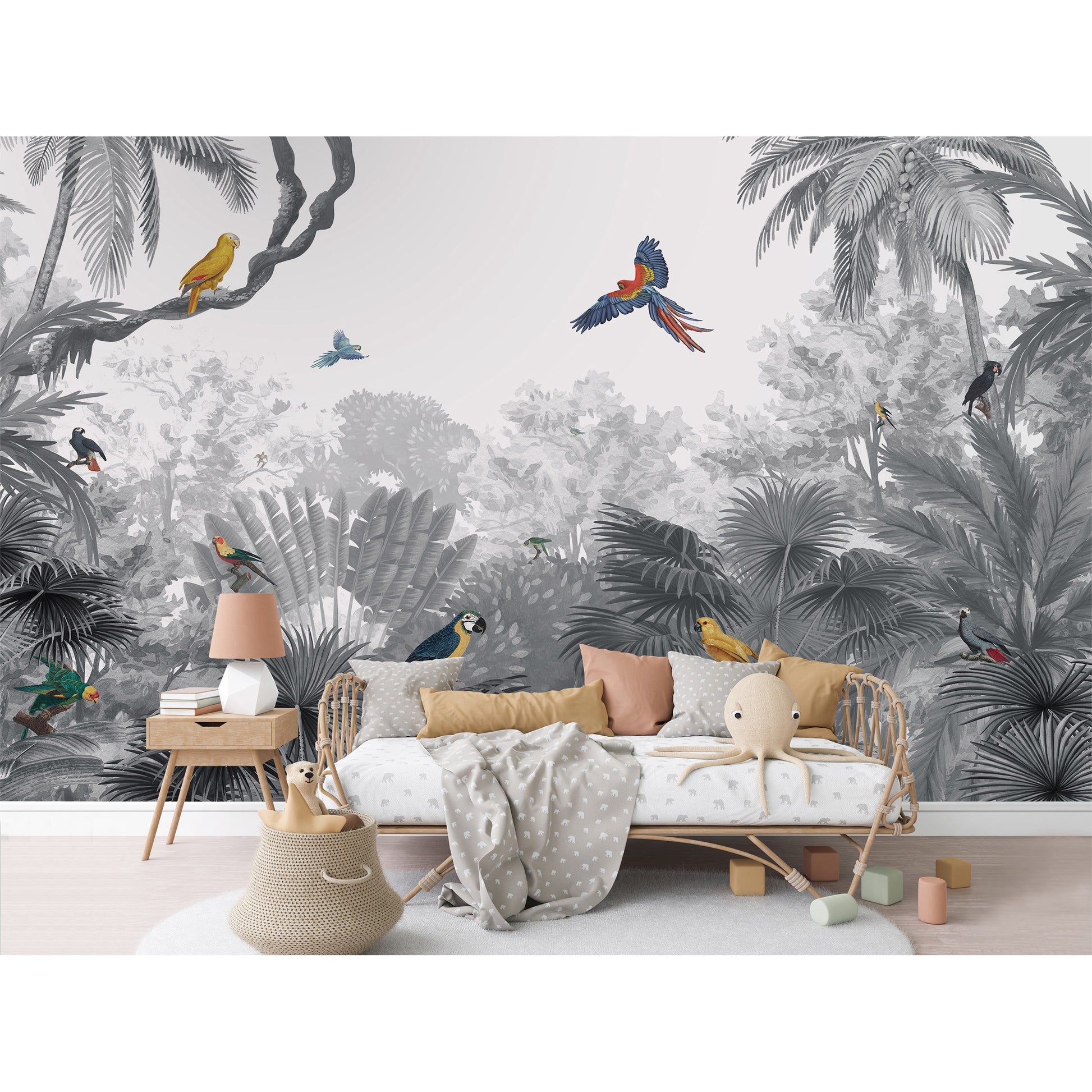 はがせるミューラル壁紙 のりなし KIKKI BELLE Canopy Jungle Black and White W13304