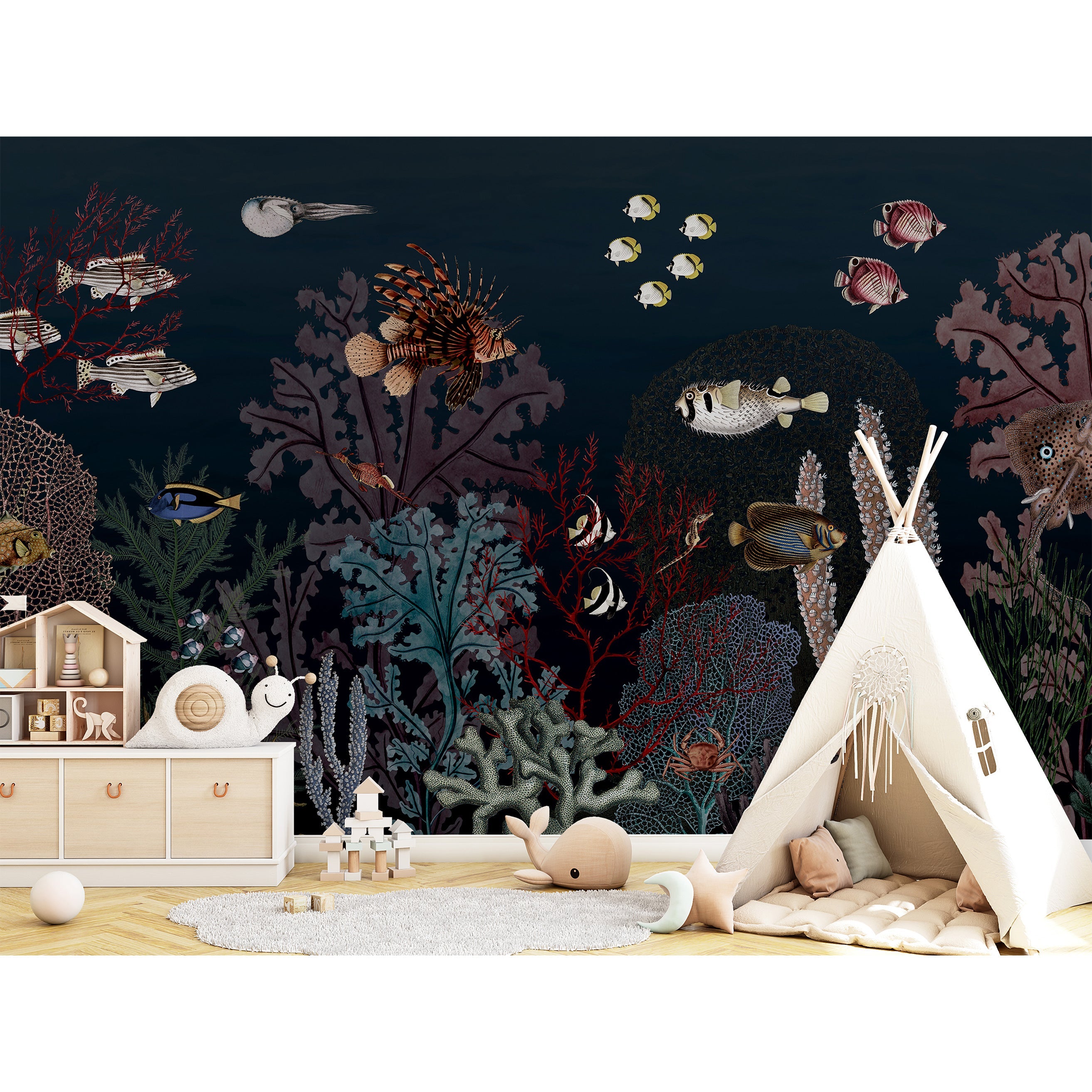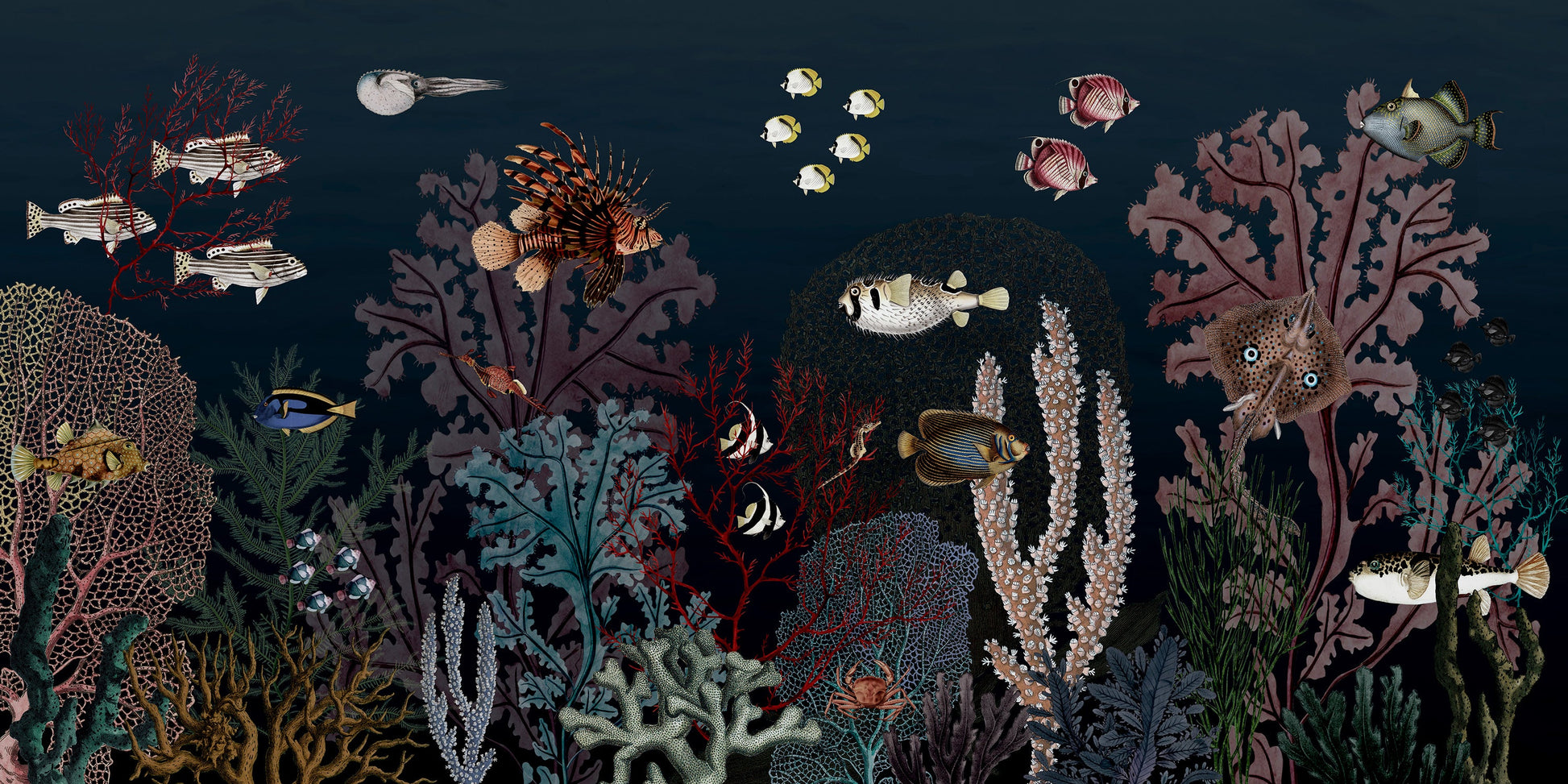 はがせるミューラル壁紙 のりなし KIKKI BELLE Roaring Reef Blue W13380
