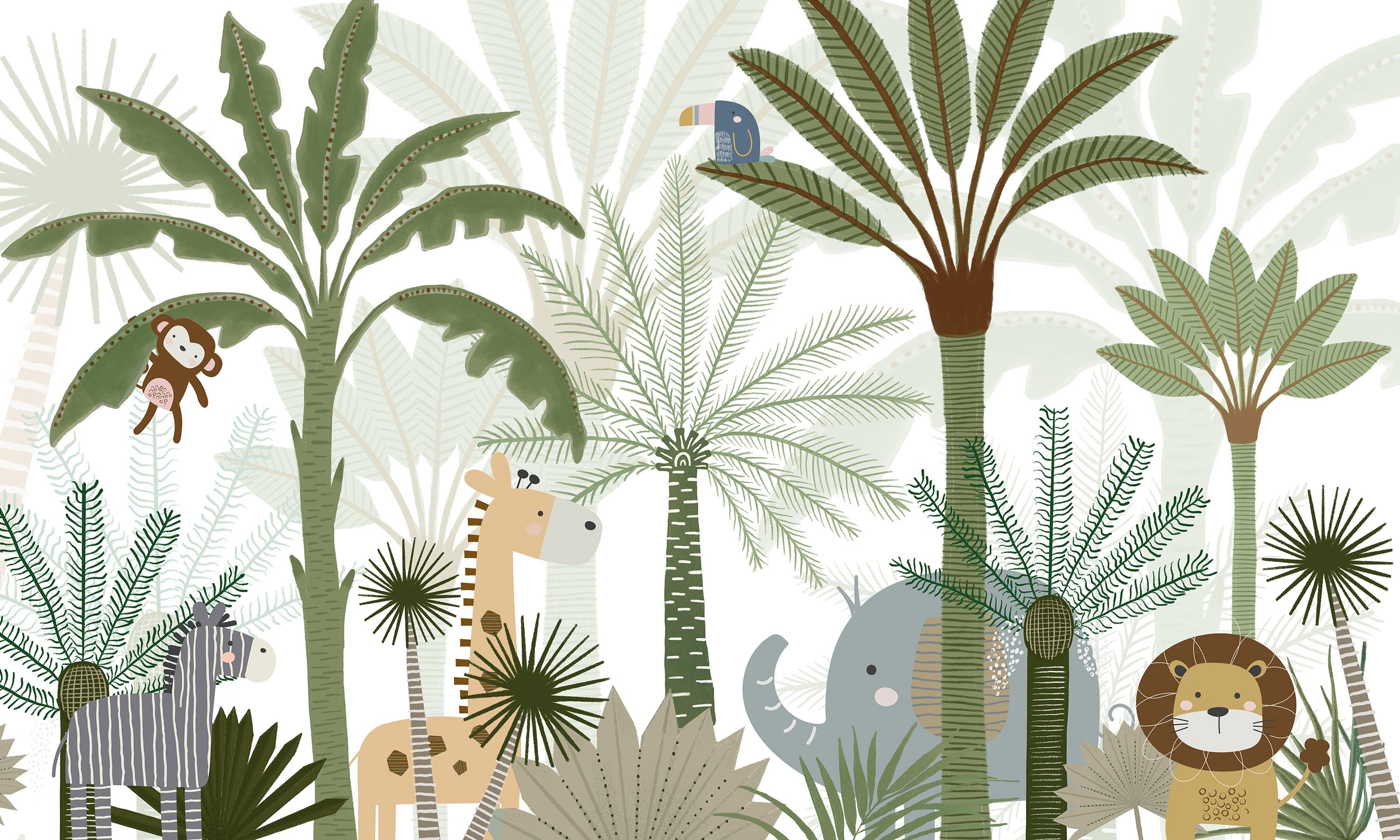 はがせるミューラル壁紙 のりなし Oliver Robins Jungle Joy W13346