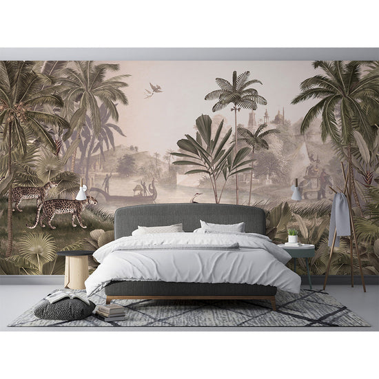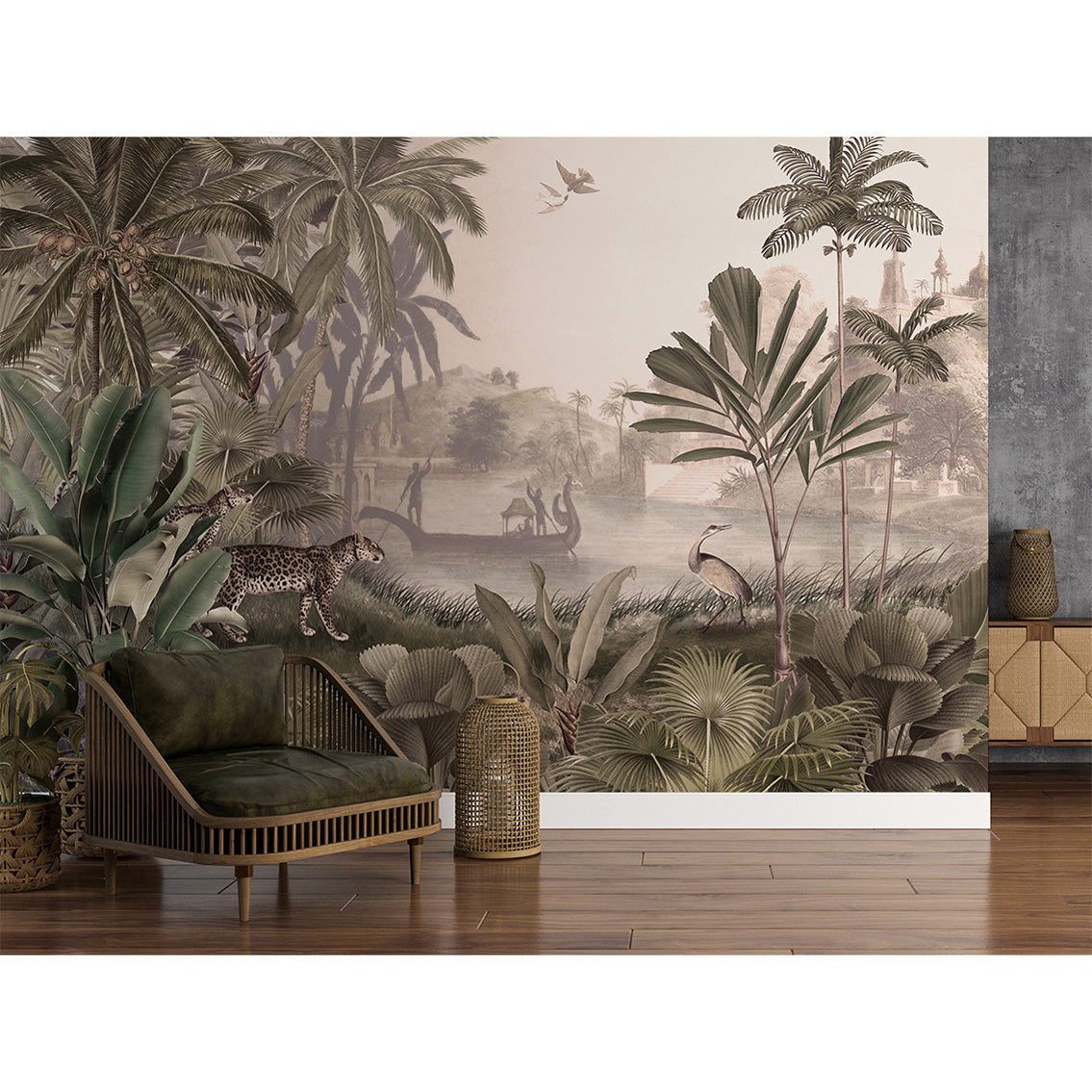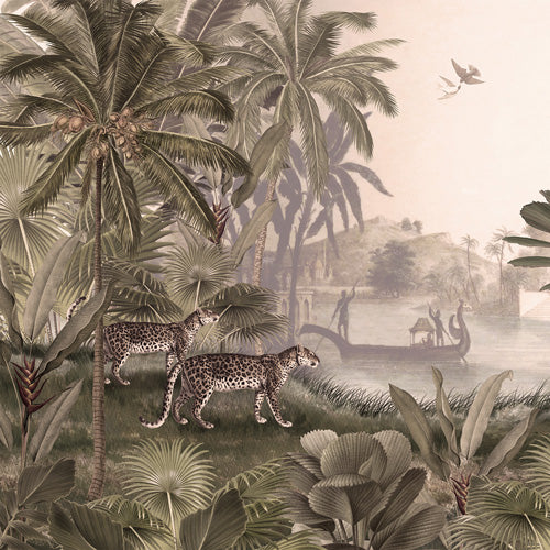 はがせるミューラル壁紙 のりなし Sir Edward Leopard Landscape Sepia W13376