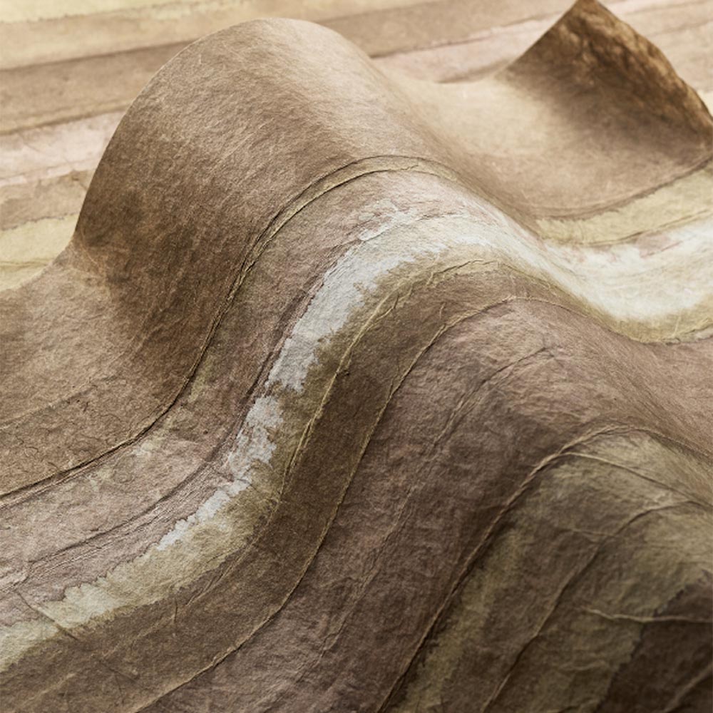 和紙をランダムに折り、折った上から刷毛で染めていきます。重なって色がつかない部分、逆に濃くなる部分が生まれ、ランダム感が面白いデザインです。