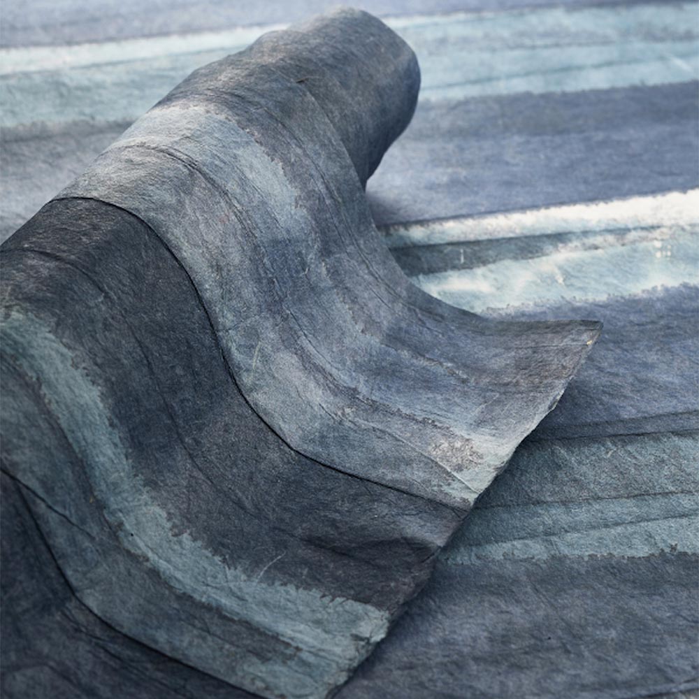 和紙をランダムに折り、折った上から刷毛で染めていきます。重なって色がつかない部分、逆に濃くなる部分が生まれ、ランダム感が面白いデザインです。