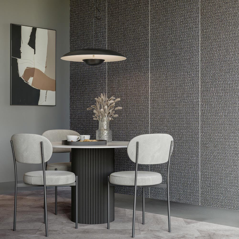 ファッションテキスタイルの産地である尾州で織られた生地を使用した織物壁紙です。