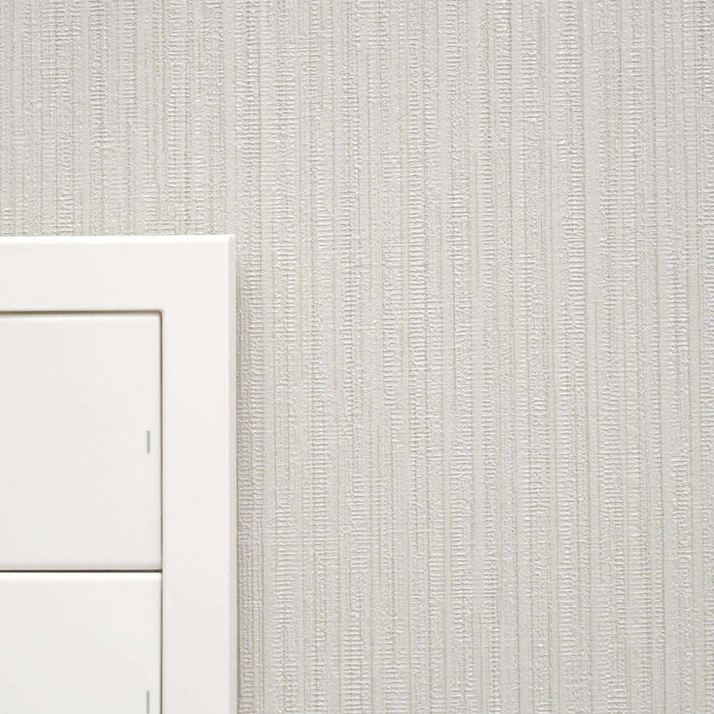 上品に輝くパールと爽やかなペールグリーンが特徴のストライプ柄。 タテ流れのデザインは天井を高く見せる効果があります。