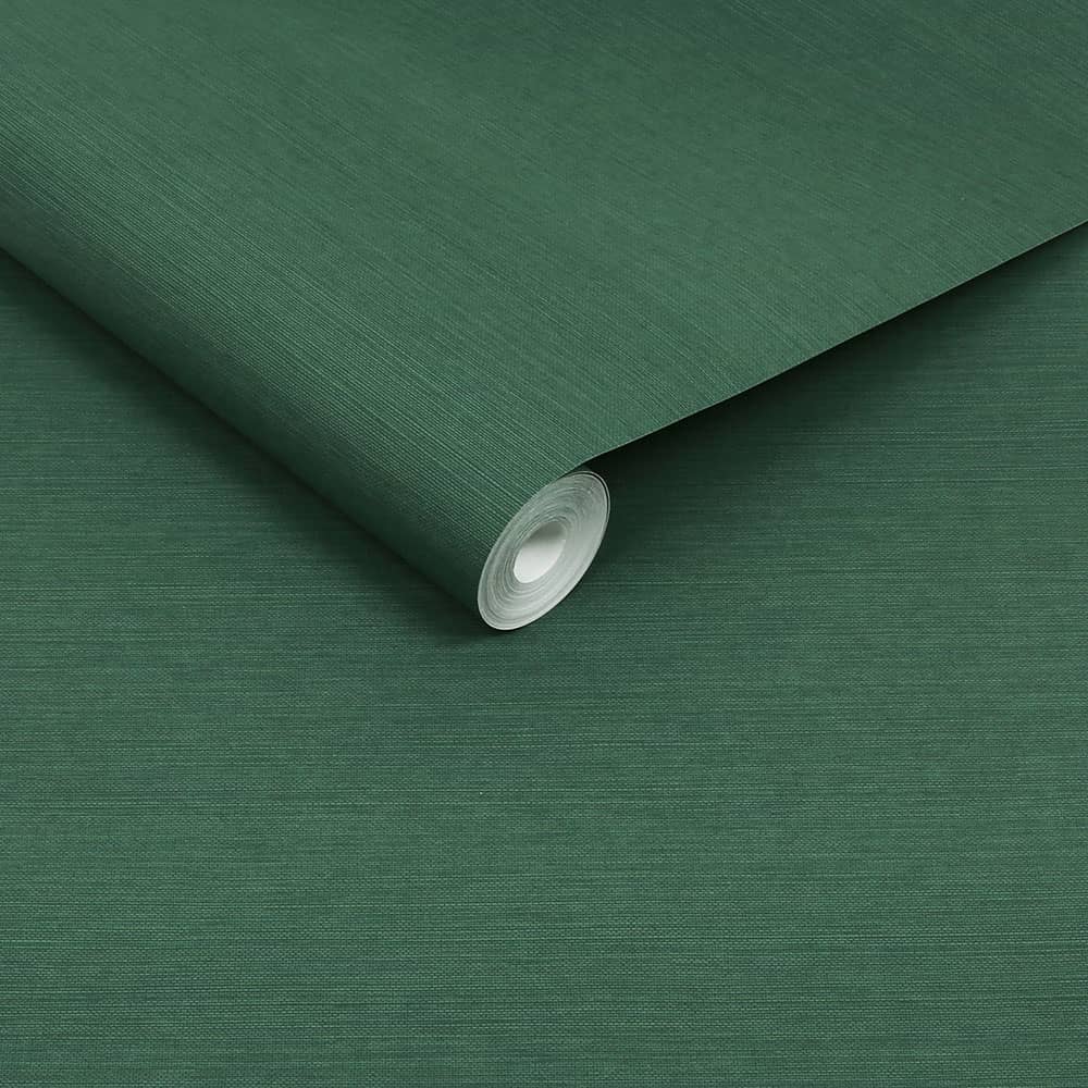 ジャングルの緑を思わせる深いグリーン。織物調のマットな質感はリラックス効果が期待できます。書斎やリビング、寝室向けの壁紙。