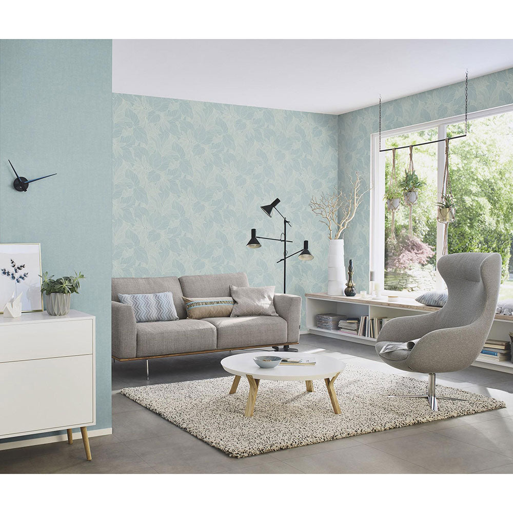 raschならではの発泡インクを施したエンボスの壁紙は立体的な印象を壁に与え、さりげない高級感を演出します。ベースカラーと葉脈のラインとのアンサンブルが繊細で優雅なデザインの壁紙です。北欧家具とのコーディネートも相性は抜群です。
