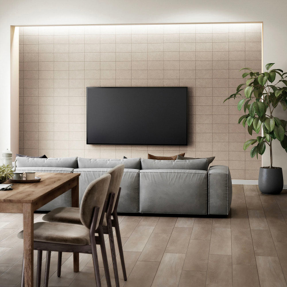 すっきりとした石目模様の大きめなタイル柄です。玄関やリビングなど、お部屋のアクセントにおすすめです。