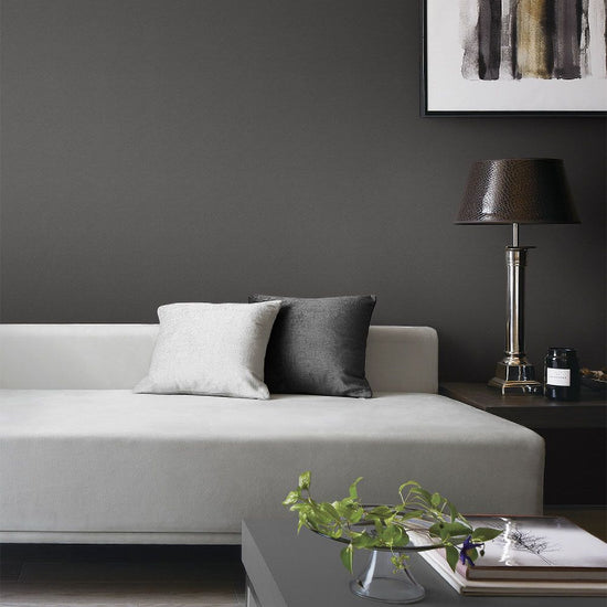 空間がぐっと引き締まるブラックの壁紙。モダンでクールな印象を与えてくれるアクセントカラーです。