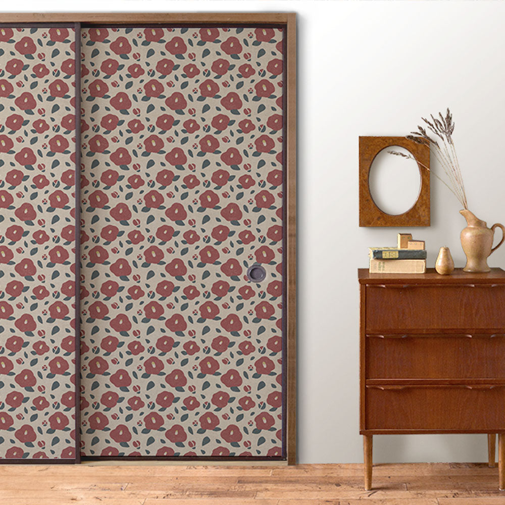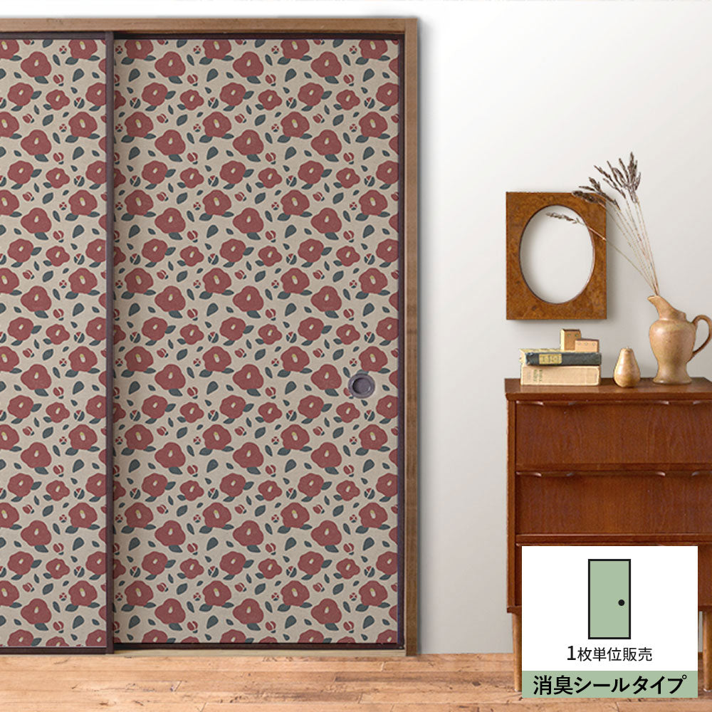 ふすまリメイクシート 消臭シールタイプ 大正ロマン つばき (約185cm×94cm)