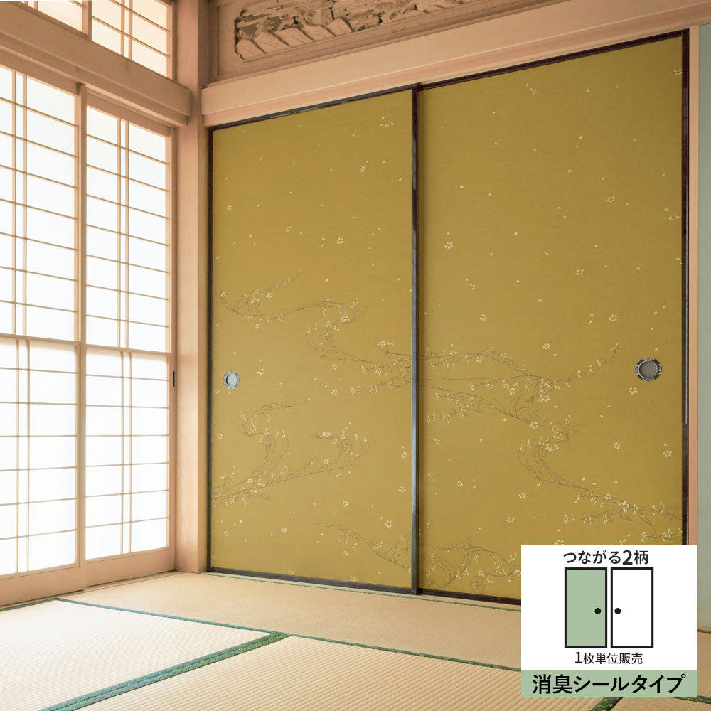ふすまリメイクシート 消臭シールタイプ 大正ロマン つながる2柄 小花A 芥子色 (約185cm×94cm)