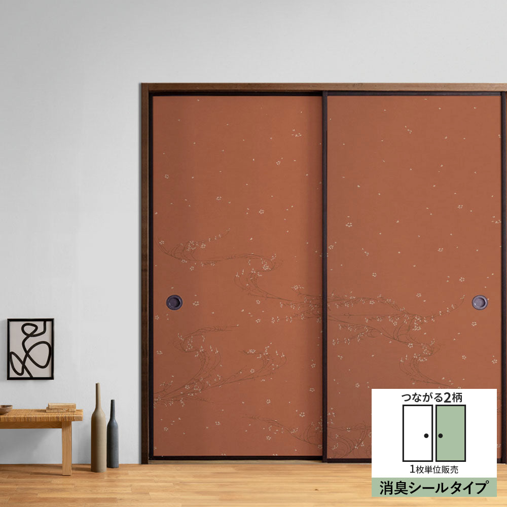 ふすまリメイクシート 消臭シールタイプ 大正ロマン つながる2柄 小花B 煉瓦 (約185cm×94cm)