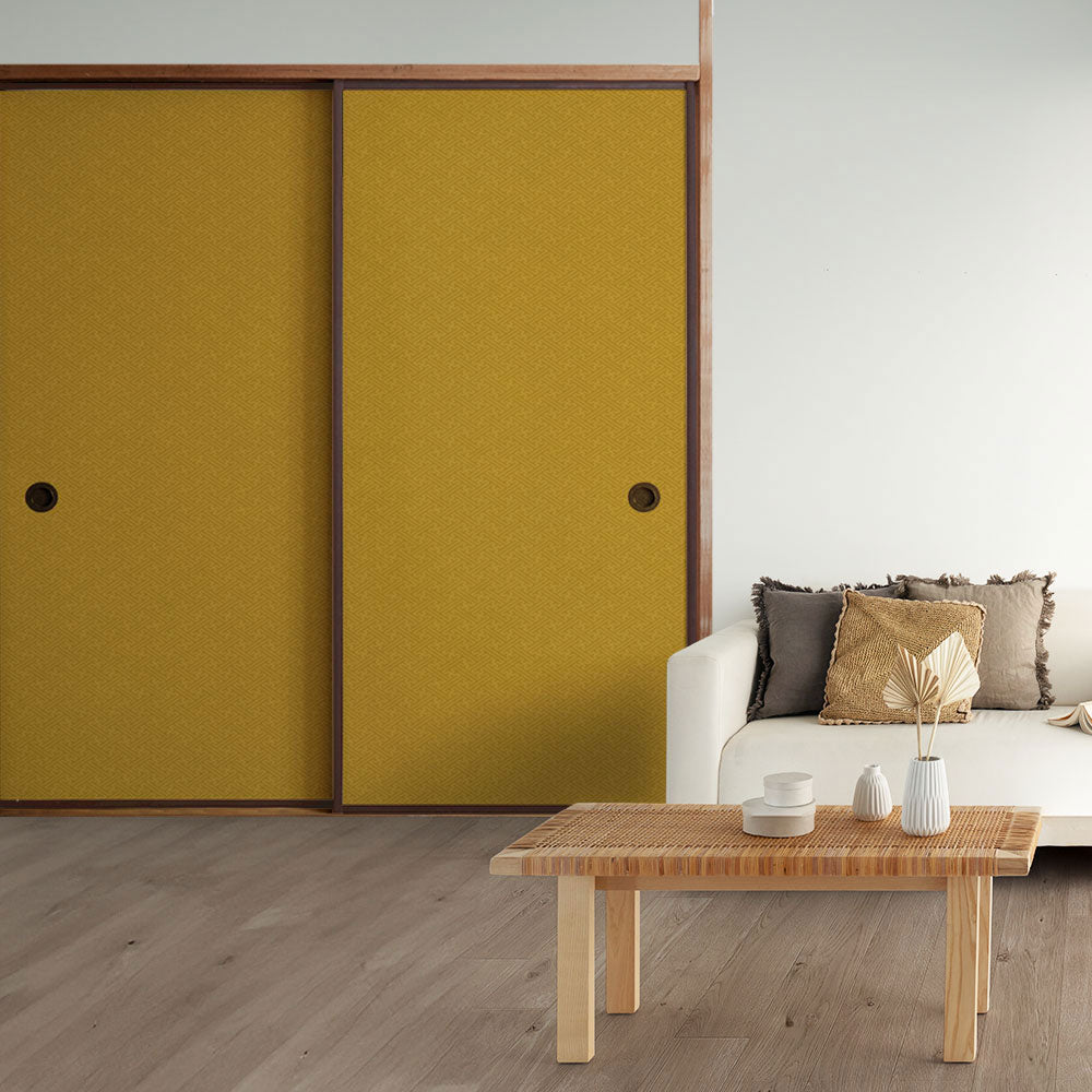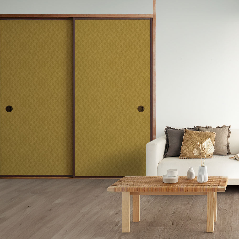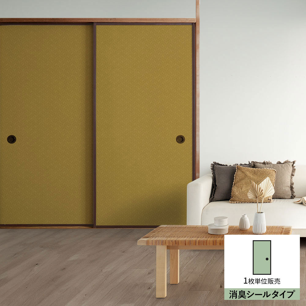 ふすまリメイクシート 消臭シールタイプ 和柄 紗綾形 芥子色 (約185cm×94cm)