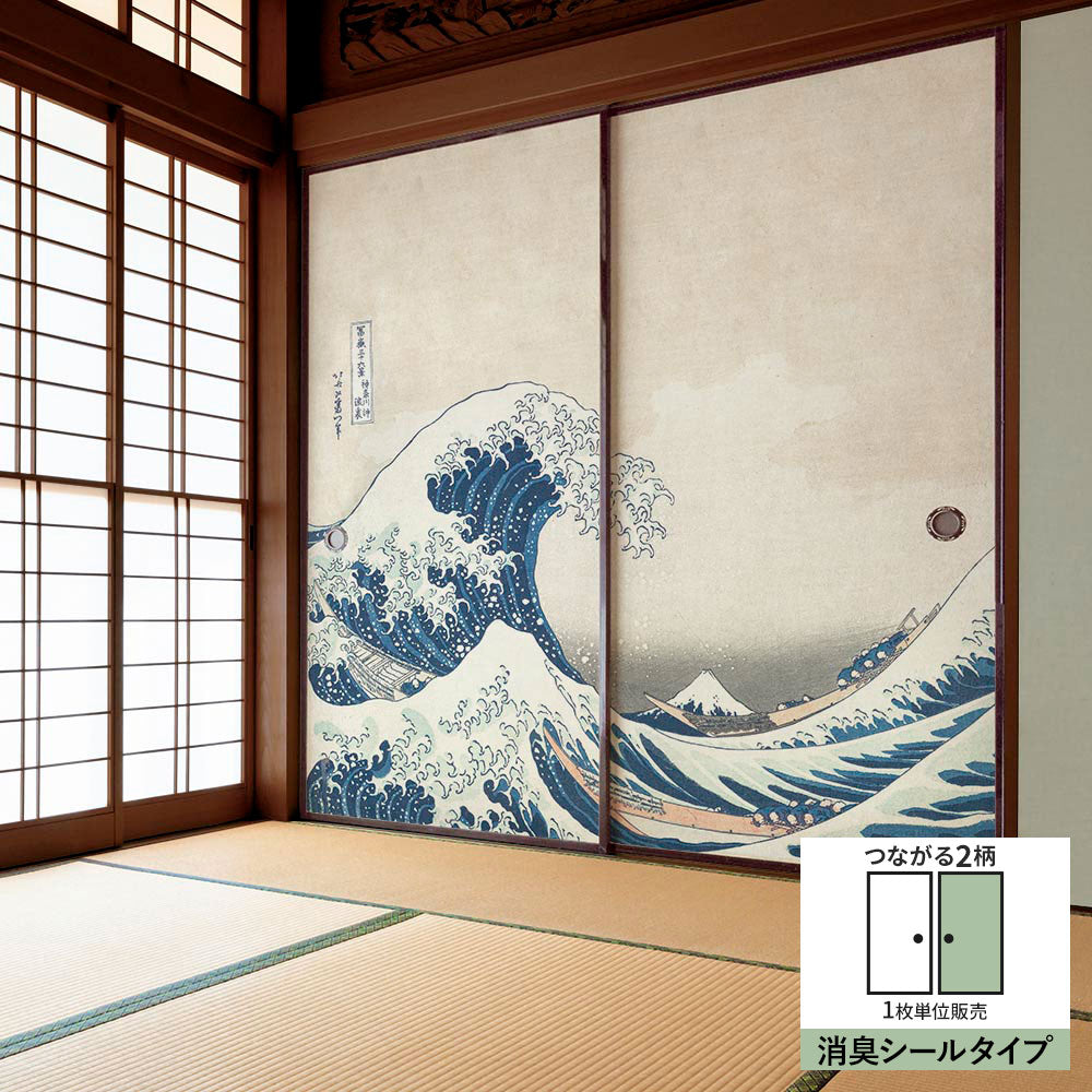 ふすまリメイクシート 消臭シールタイプ つながる2柄 葛飾北斎 神奈川沖浪裏 B (約185cm×94cm)