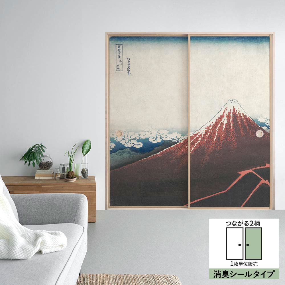 ふすまリメイクシート 消臭シールタイプ つながる2柄 葛飾北斎 三下の白雨 B (約185cm×94cm)