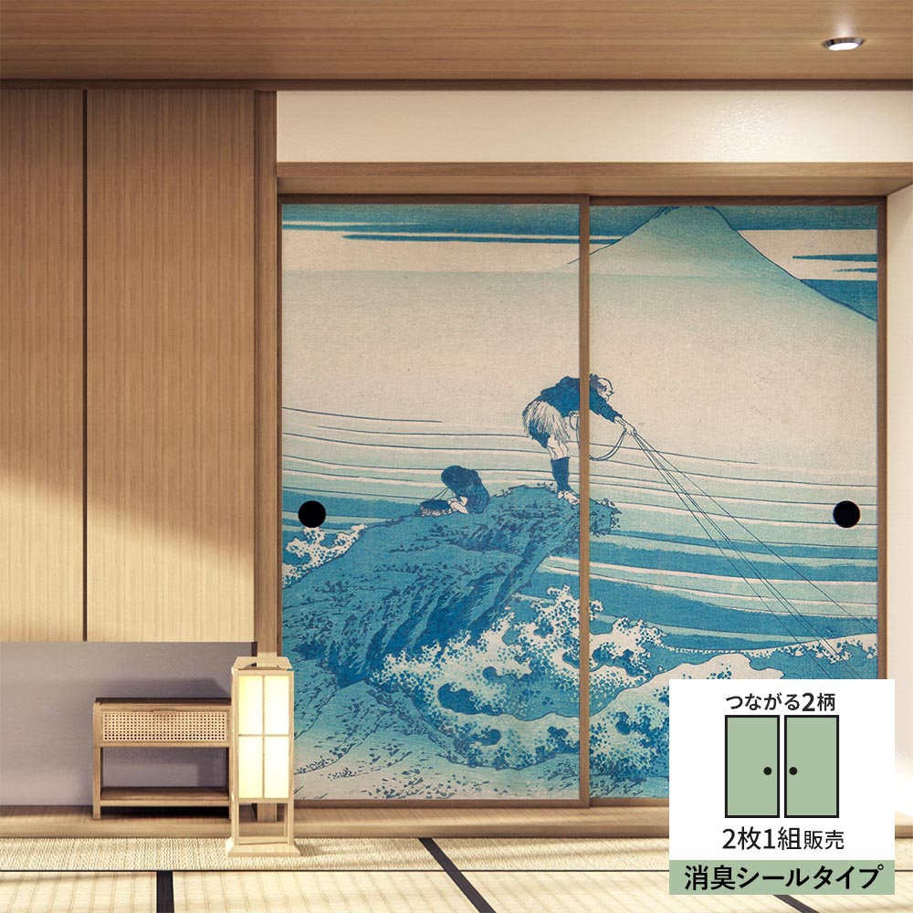 【2枚1組】ふすまリメイクシート 消臭シールタイプ つながる2柄 葛飾北斎 甲州石班沢