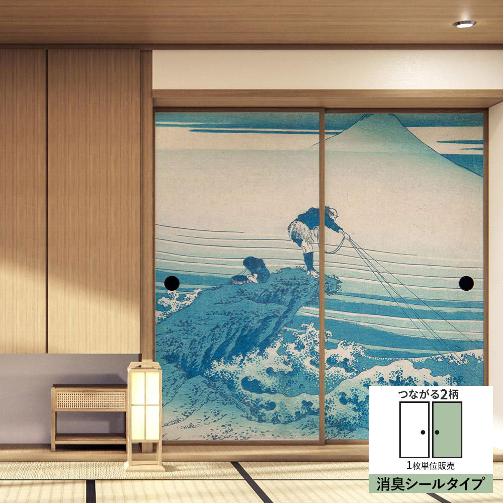 ふすまリメイクシート 消臭シールタイプ つながる2柄 葛飾北斎 甲州石班沢 B (約185cm×94cm)