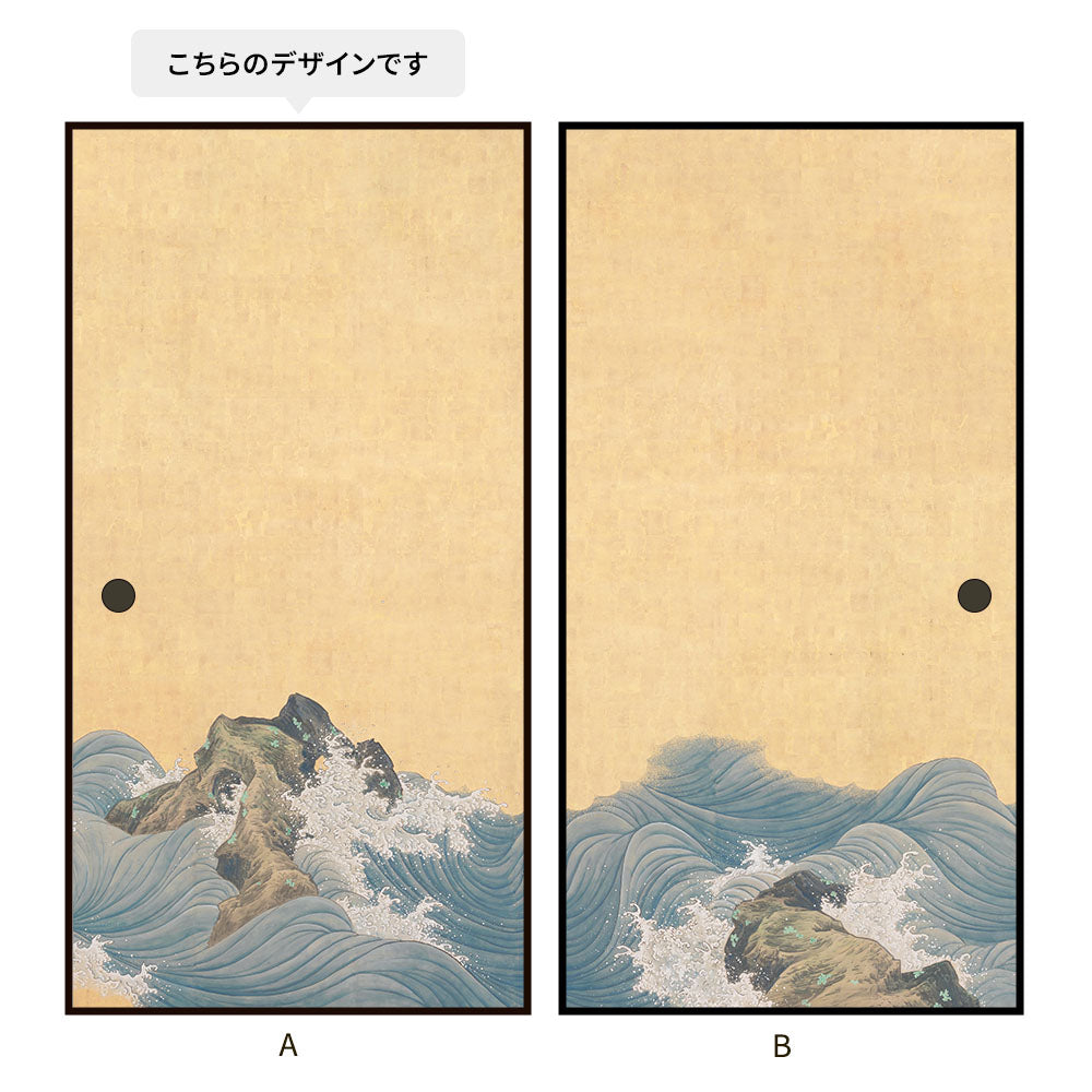 ふすまリメイクシート 消臭シールタイプ つながる2柄 山跡鶴嶺 波濤図屏風 A (約185cm×94cm)