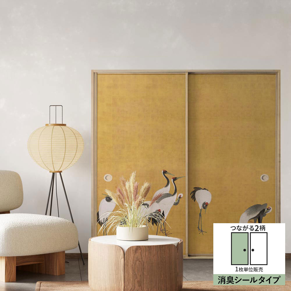 ふすまリメイクシート 消臭シールタイプ つながる2柄 円山応挙 群鶴図屏風 A (約185cm×94cm)