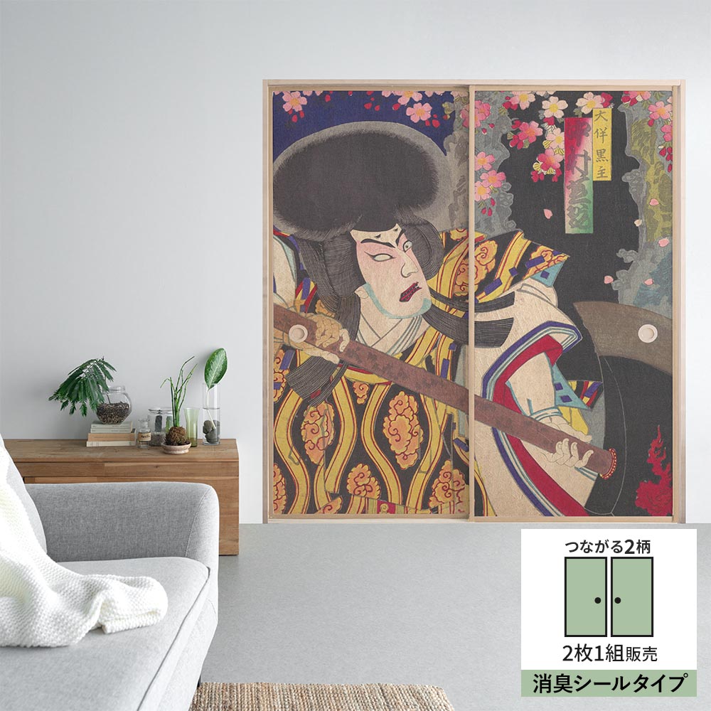 【2枚1組】ふすまリメイクシート 消臭シールタイプ つながる2柄 楊洲周延 積恋雪関扉