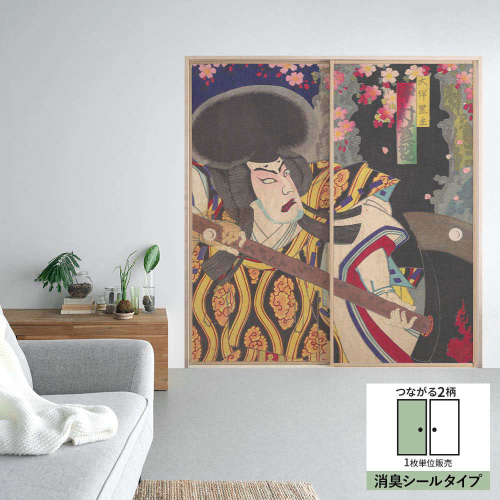 ふすまリメイクシート 消臭シールタイプ つながる2柄 楊洲周延 積恋雪関扉 A (約185cm×94cm)