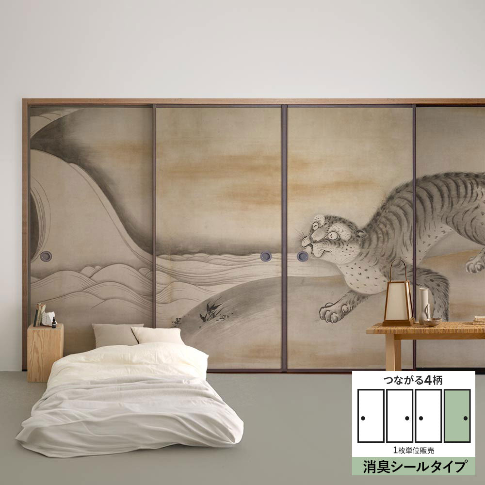 ふすまリメイクシート 消臭シールタイプ つながる4柄 曽我直庵 龍虎図屏風 虎 D (約185cm×94cm)