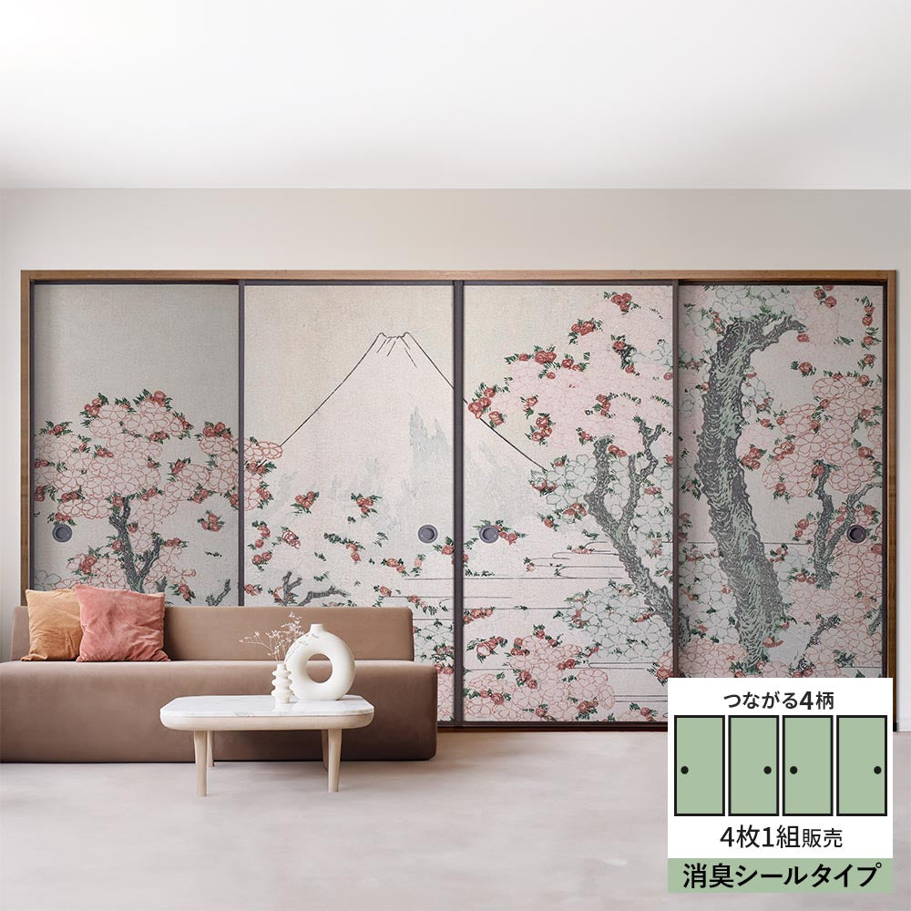 【4枚1組】ふすまリメイクシート 消臭シールタイプ つながる4柄 葛飾北斎 桜花に富士図
