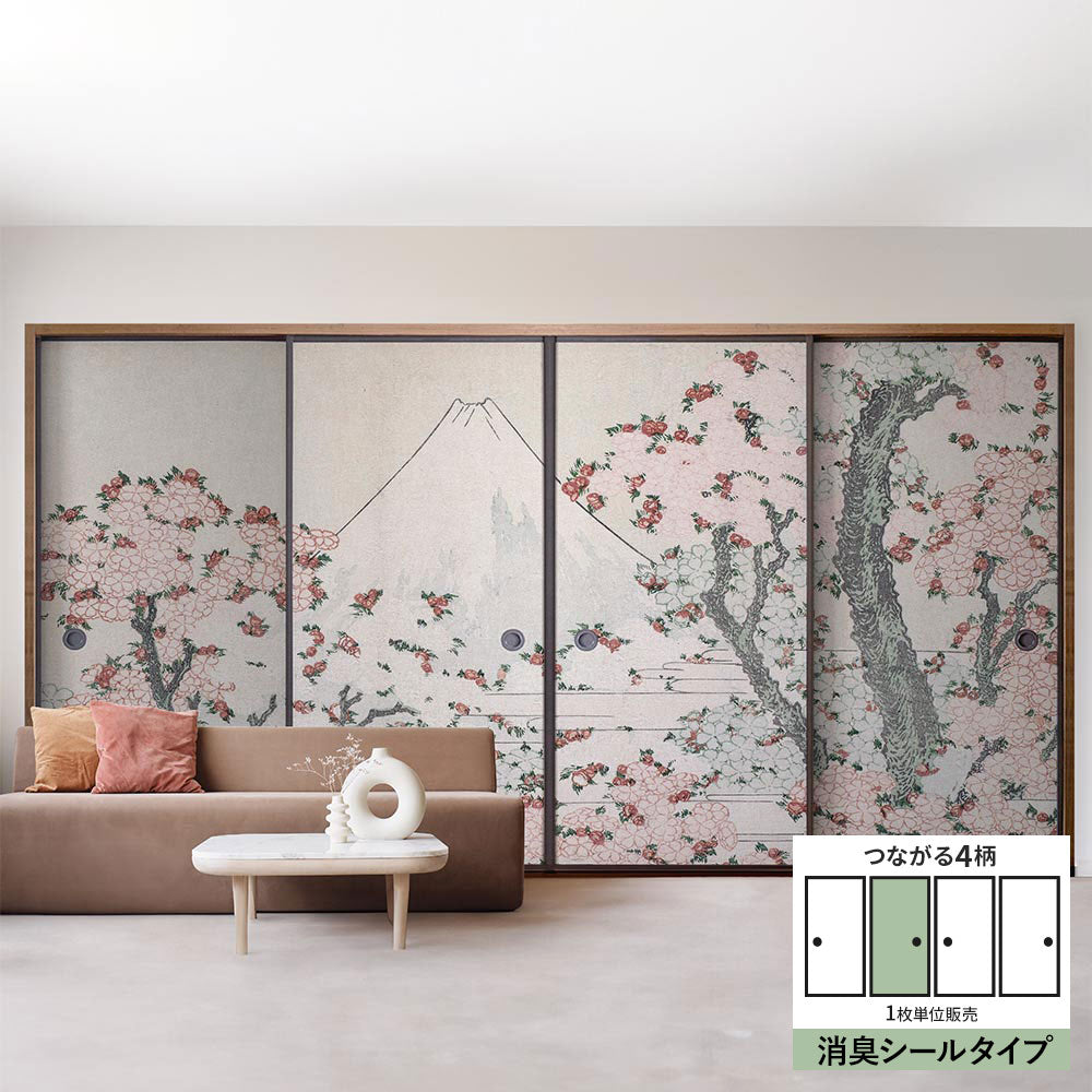 ふすまリメイクシート 消臭シールタイプ つながる4柄 葛飾北斎 桜花に富士図 B (約185cm×94cm)