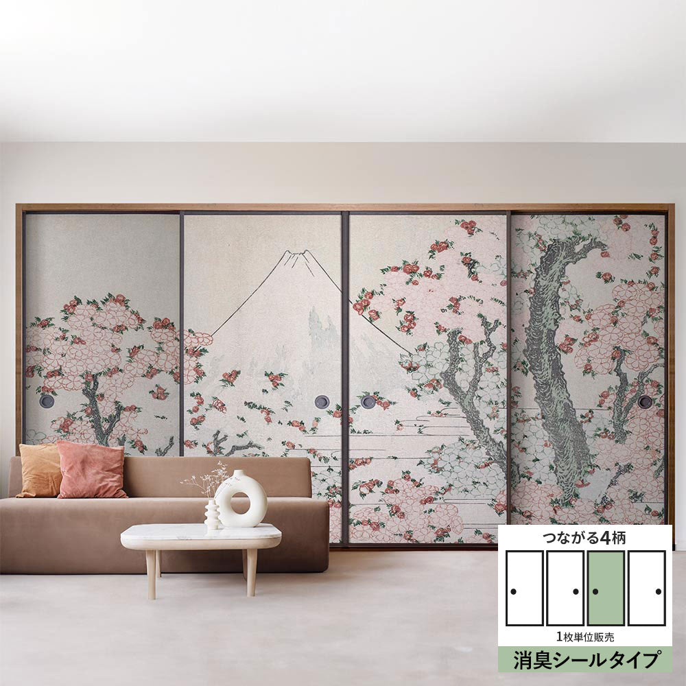 ふすまリメイクシート 消臭シールタイプ つながる4柄 葛飾北斎 桜花に富士図 C (約185cm×94cm)