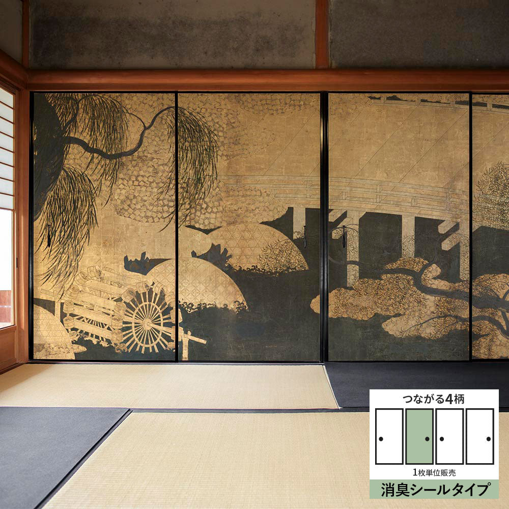ふすまリメイクシート 消臭シールタイプ つながる4柄 長谷川等伯 柳橋水車図屏風 B (約185cm×94cm)