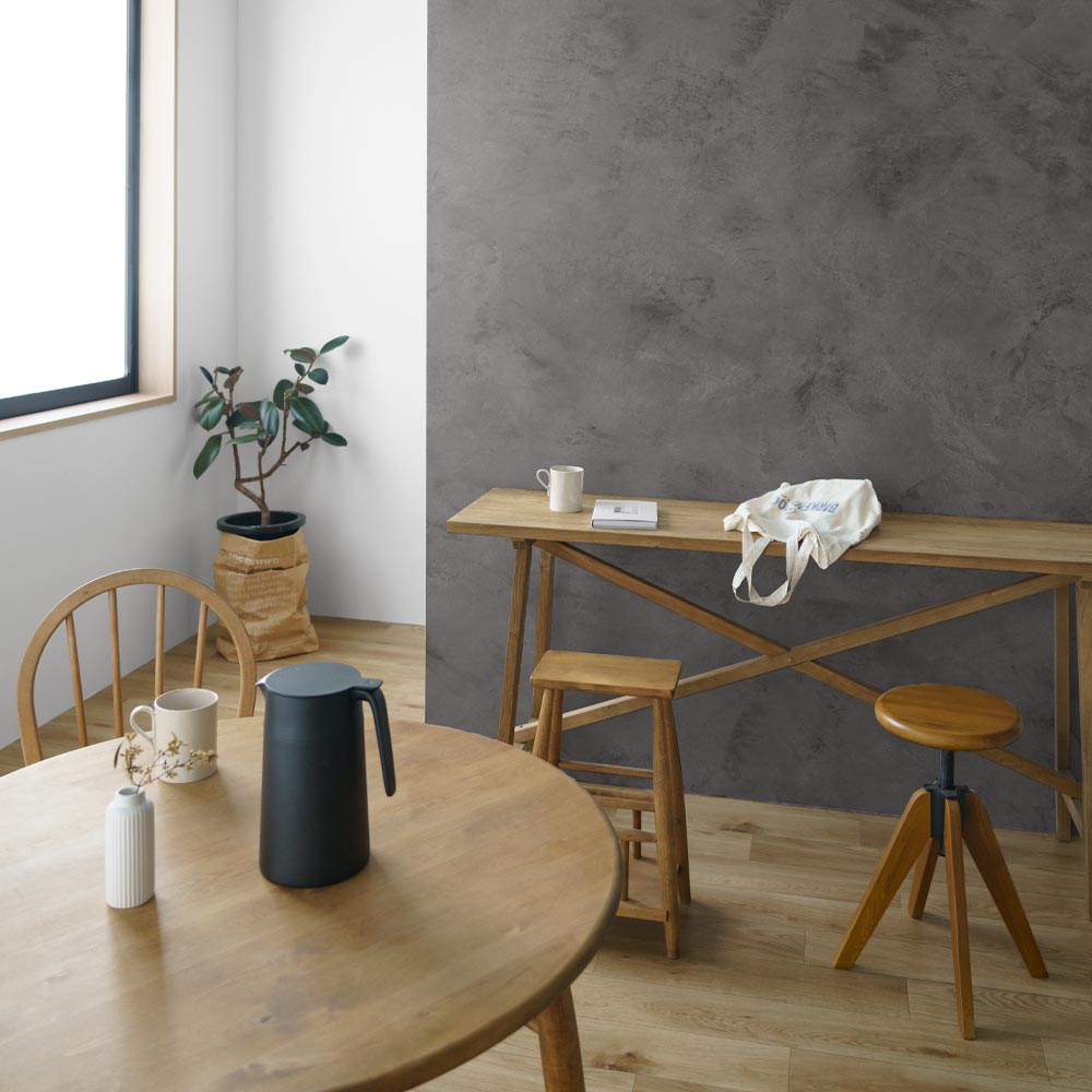 落ち着いた印象でありながら、色のムラ感を楽しめる塗り壁調のデザインです。