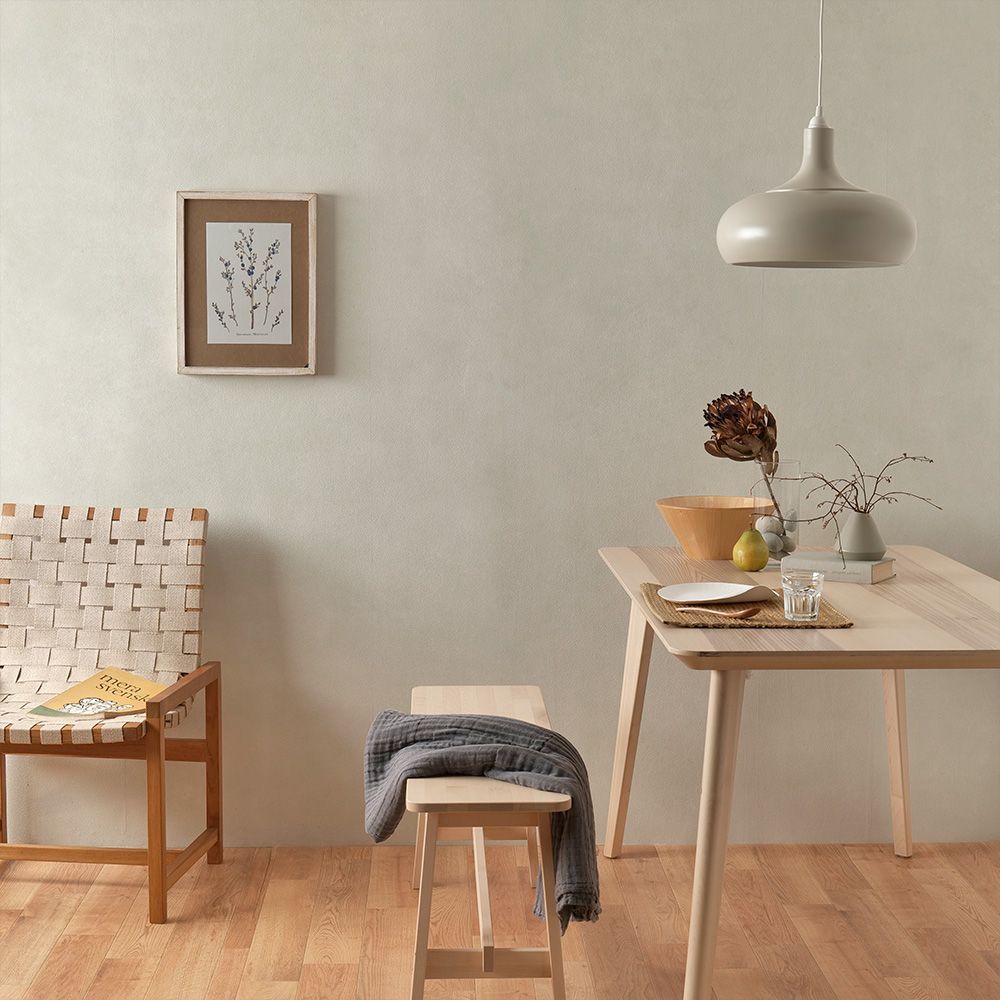 洗練された印象に仕上がるコンクリート柄ですが、木目の家具と合わせるとどこか冷たい印象になってしまう。木の温もりを打ち消さず、接しやすくナチュラルな空間に寄り添うように少し黄色みを意識してデザインしました。コンクリート×木目の家具という素材のギャップを演出しつつ、コーディネートしやすいコンクリート柄に仕上げています。
