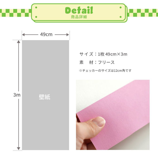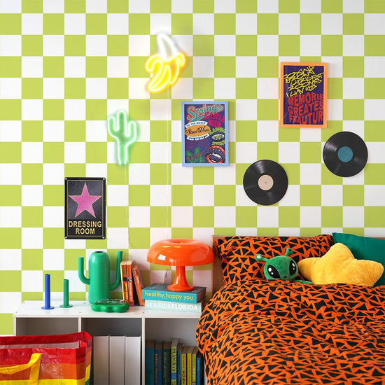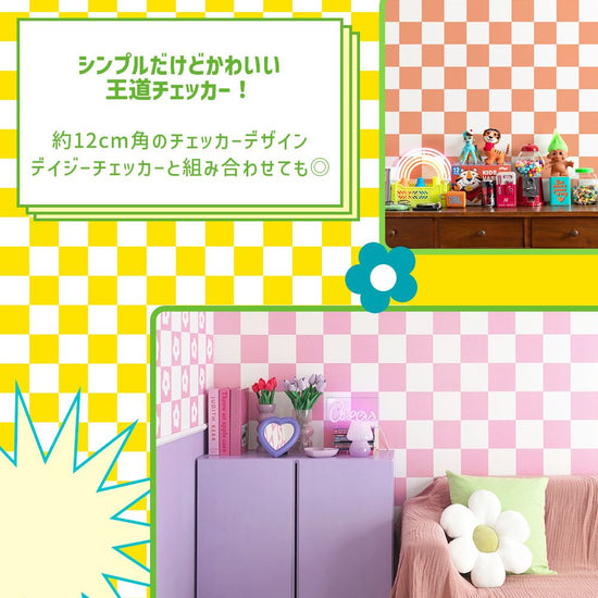はがせる壁紙 のりなしタイプ What's poppin? チェッカー L (49cm×3mサイズ) ライム