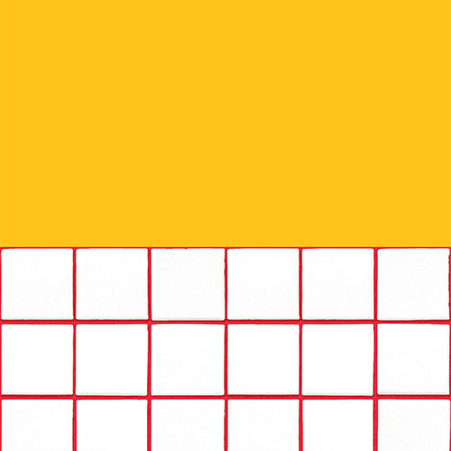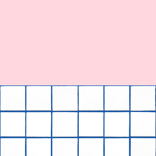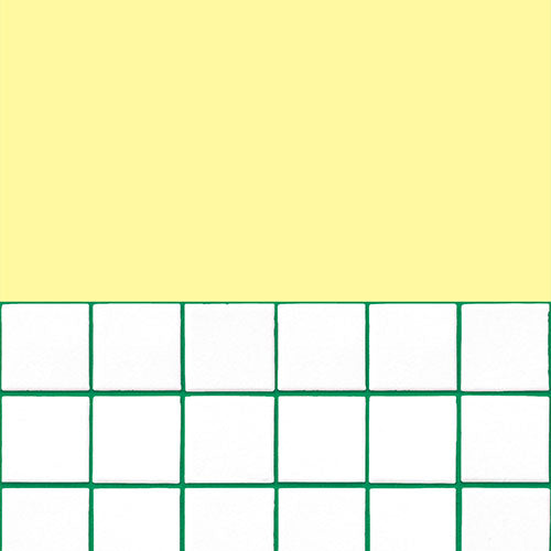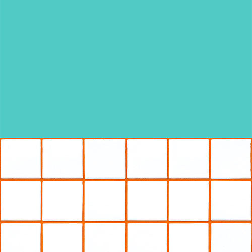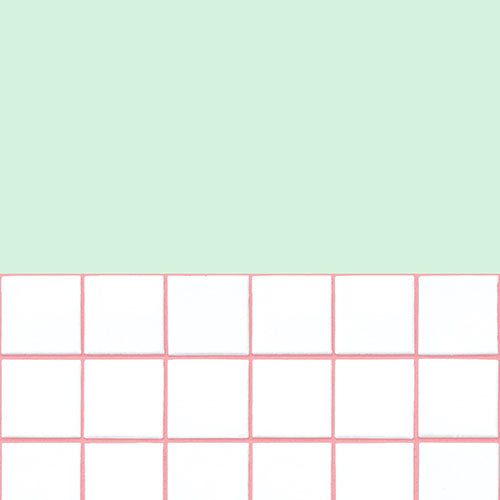 すっきりシンプルな無地に、パッと明るい目地色のタイル柄を合わせたポップなデザイン