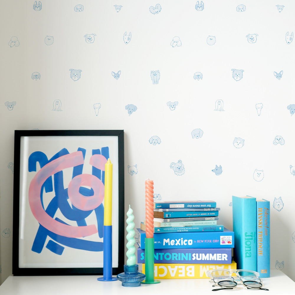 はがせる壁紙 のりなしタイプ What's poppin? Doggy’s Collection (49cm×2.5mサイズ) Faceful Friends ブルー